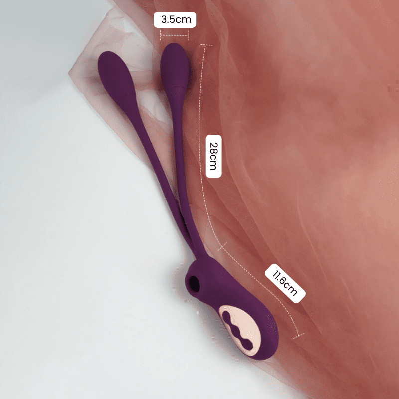 - Modo “Solo Play”: Succión clitoral + doble penetración vibradora.